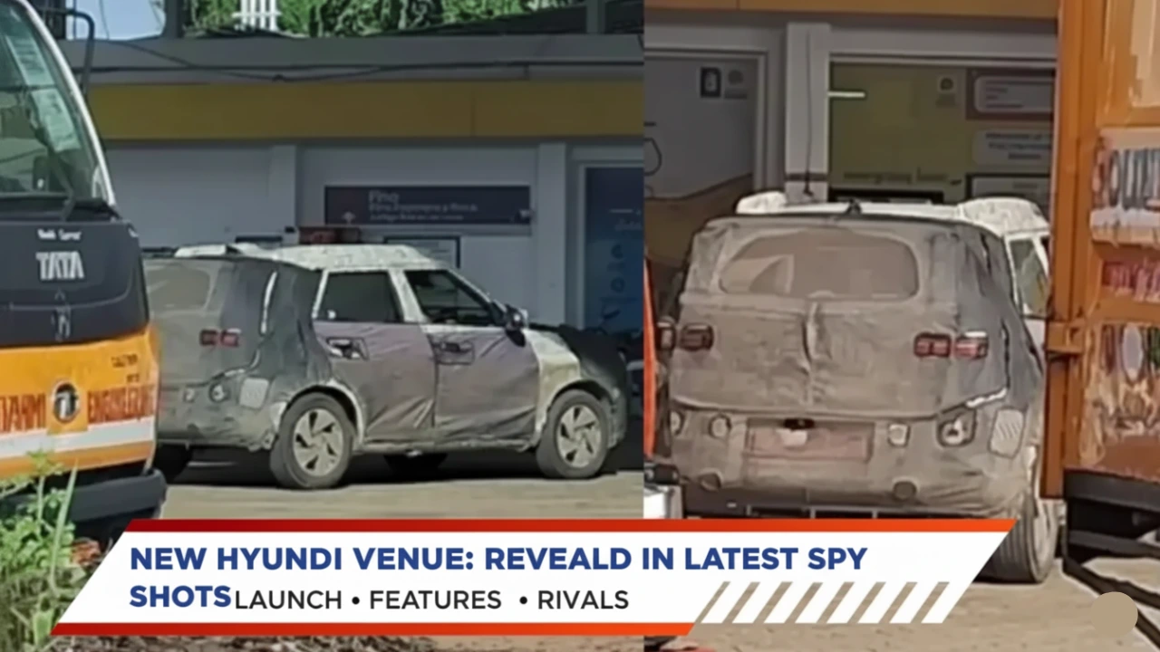 New Hyundai Venue 2025 spy shots show the heavily camouflaged next-gen SUV testing in India, revealing new LED tail lamps and a boxier silhouette as it prepares to rival the Kia Sonet and Tata Nexon.