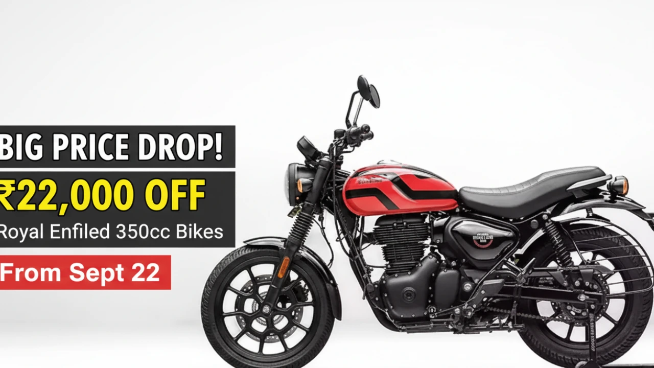 Royal Enfield has announced a price cut across its 350cc range with a direct ex-showroom reduction of up to ₹22,000 effective September 22, following the GST rate cut on sub-350cc two-wheelers from 28% to 18%. The price drop applies to all motorcycles in Royal Enfield’s popular 350cc lineup, including the Classic 350, Hunter 350, Bullet 350, and Meteor 350.
