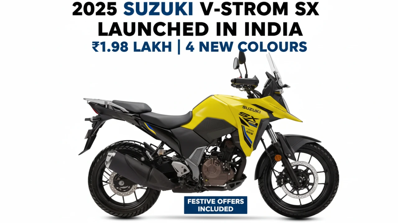 2025 Suzuki V-STROM SX arrives at ₹1.98 lakh with four new colours and festive benefits, specs unchanged.