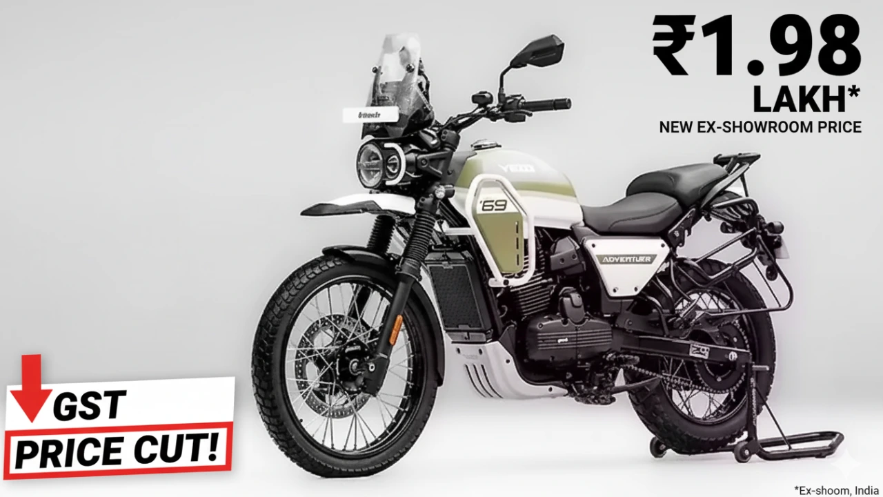 Yezdi bikes see a GST-led price cut, with Roadster at ₹1.93 lakh, Scrambler at ₹1.95 lakh, and Adventure at ₹1.98 lakh ex-showroom in India.
